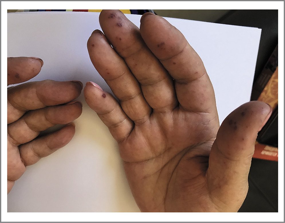 Рис. 2. Телеангиоэктазии на кончиках пальцев. / Fig. 2. Telangiectasias at the fingertips.