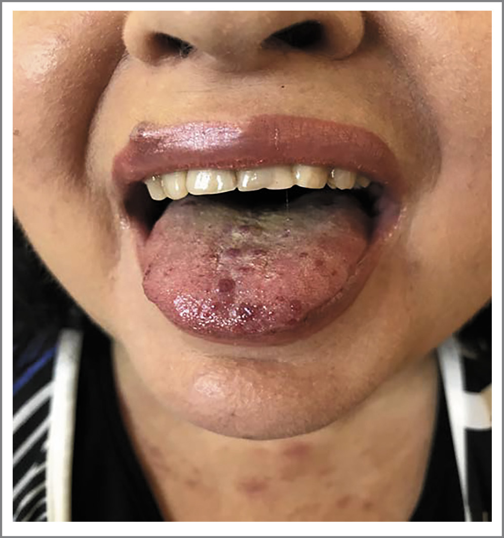 Рис. 3. Телеангиоэктазии на языке. / Fig. 3. Telangiectasia on the tongue.