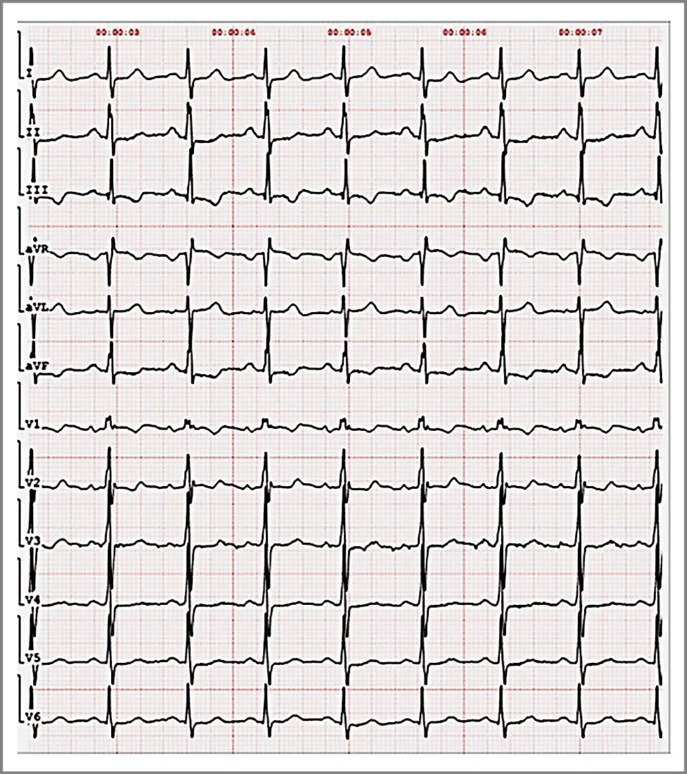 Рис. 4. Электрокардиография больной при поступлении. / Fig. 4. Electrocardiography of the patient on admission.