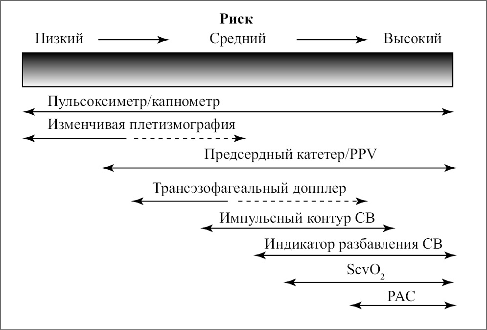 Рис. 2. Выбор мониторинга в зависимости от степени тяжести пациента и риска осложнений