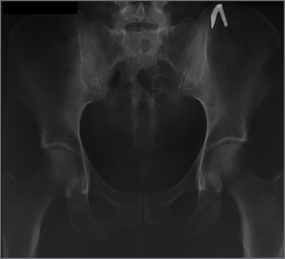 По данным рентгенографии костей таза выявлен двусторонний сакроилиит 2-й степени по Келлгрену (рис. 1).