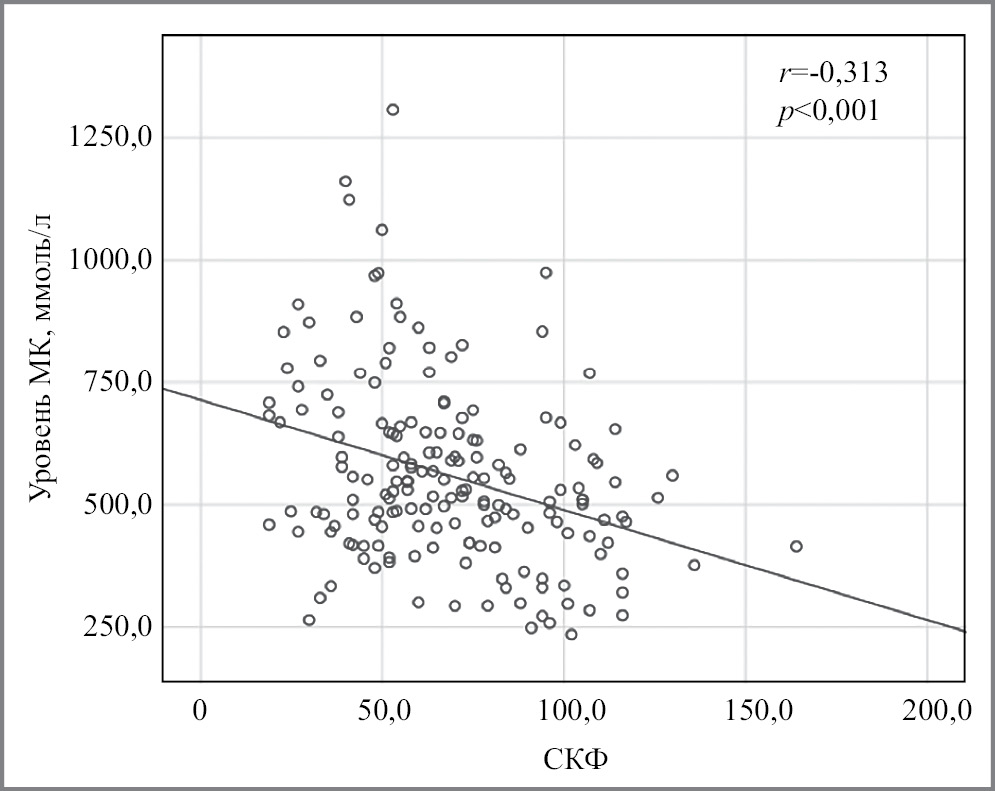 Рис. 3. Корреляция между уровнем МК и СКФ.