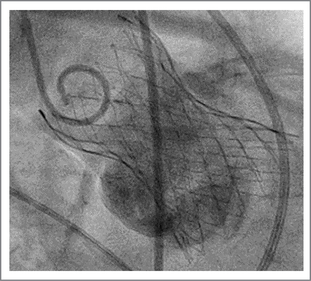 Fig. 5. Final intraoperative aortography. A self-expanding aortic valve prosthesis is installed in the aortic position.