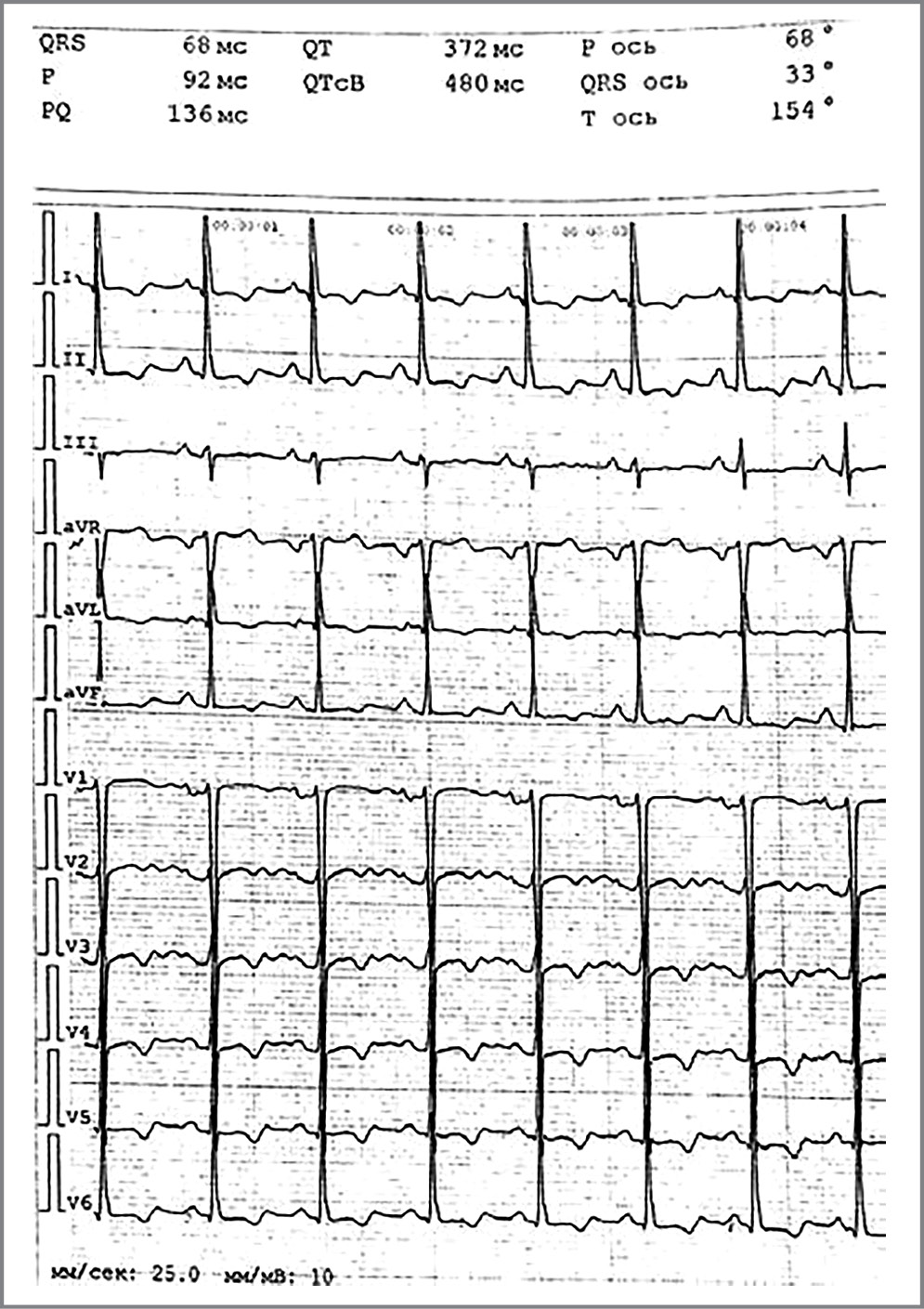 Рис. 1. Электрокардиограмма пациентки при поступлении.