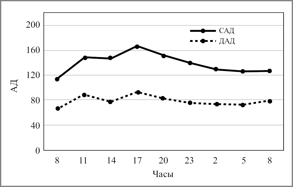 Рис. 3. Трехчасовое измерение АД после проведенного лечения.