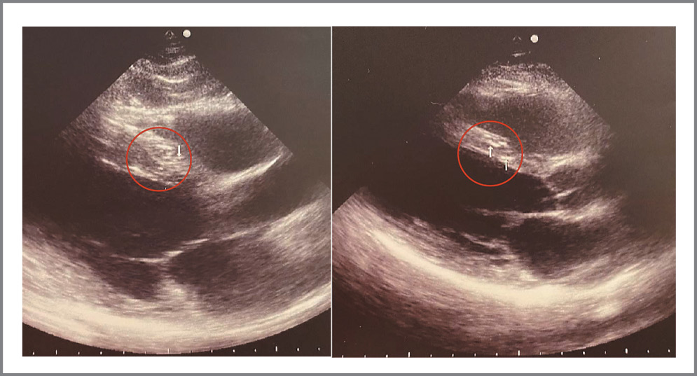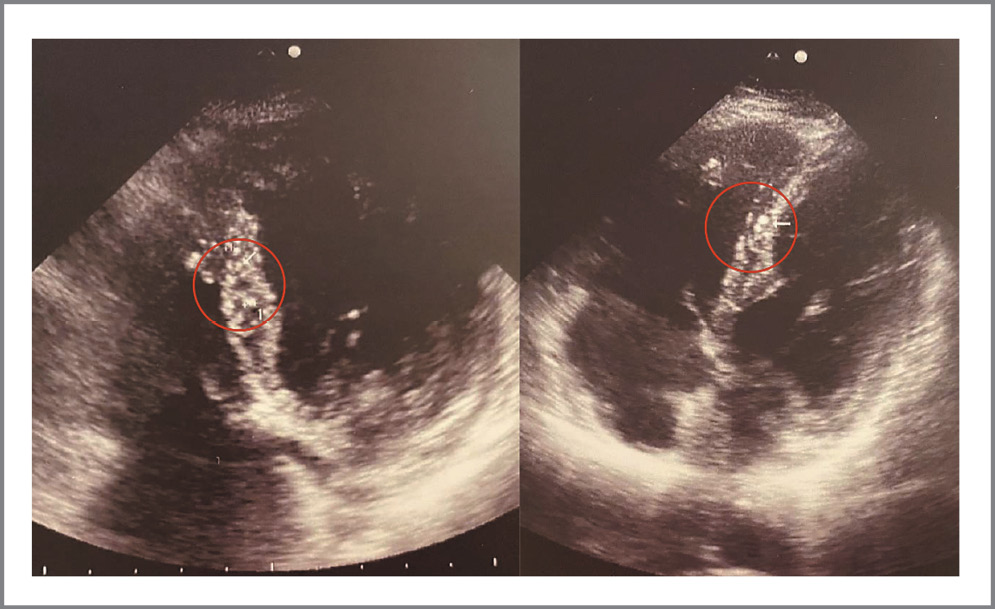 Рис. 4. ЭхоКГ, апикальная 4-камерная позиция, примеры включений в толще межжелудочковой перегородки.