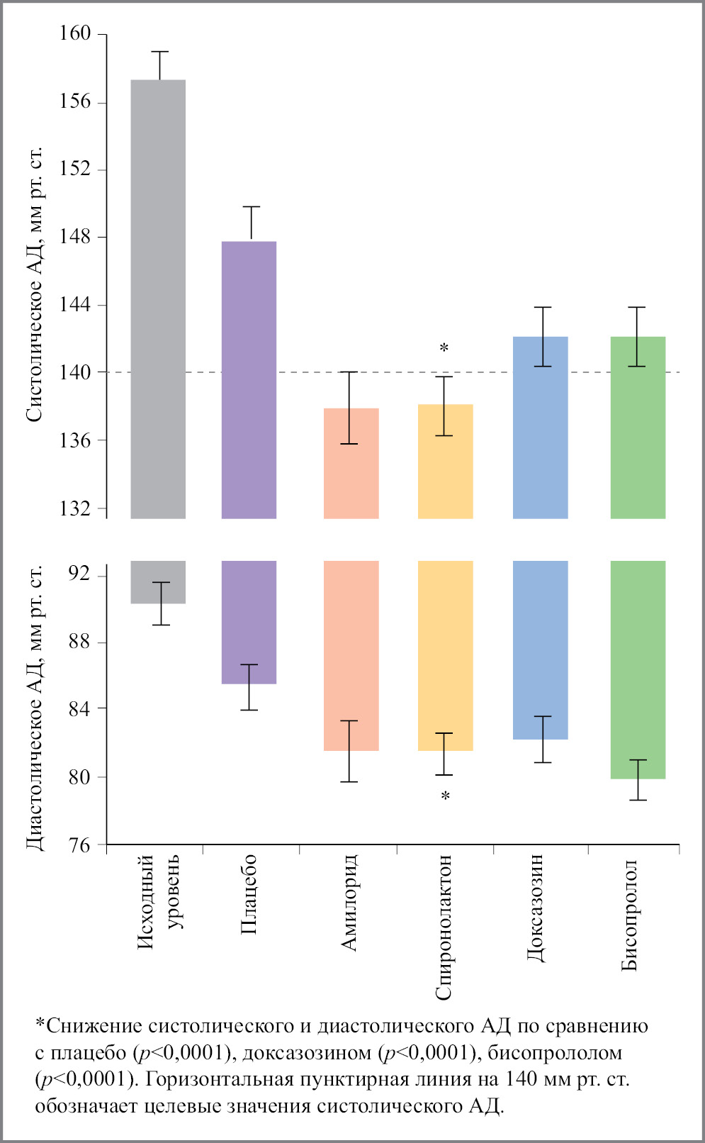 Выводы из многочисленных публикаций последних лет сводятся к тому, что добавление спиронолактона оказывает положительное влияние на снижение АД у пациентов с рефрактерной АГ.