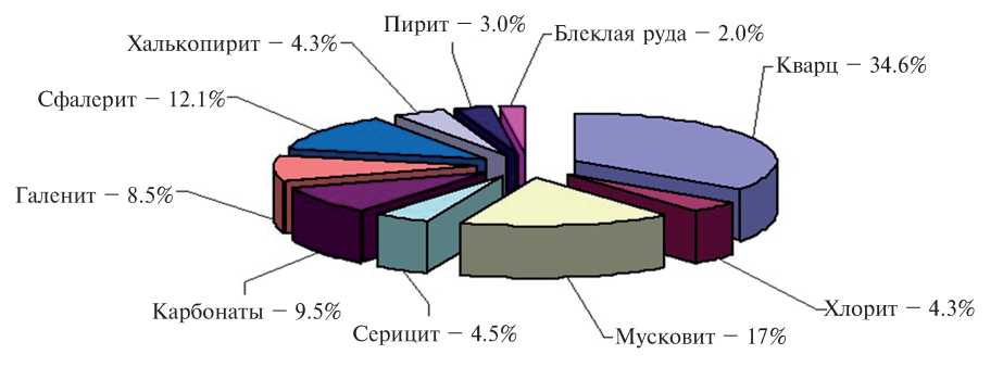 Рис. 4. Соотношения рудных минералов месторождения Перевальное по результатам минералогического анализа (данные АО “Полиметалл Инжиниринг”, 2010 г.) с изменениями.