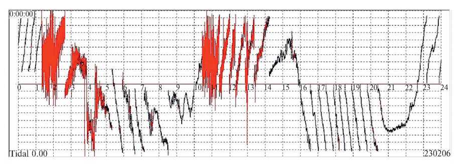Рис. 2. Фрагмент сигнала деформографа от 0:00:00 до 24:00:00 UTC 6 февраля 2023 г.