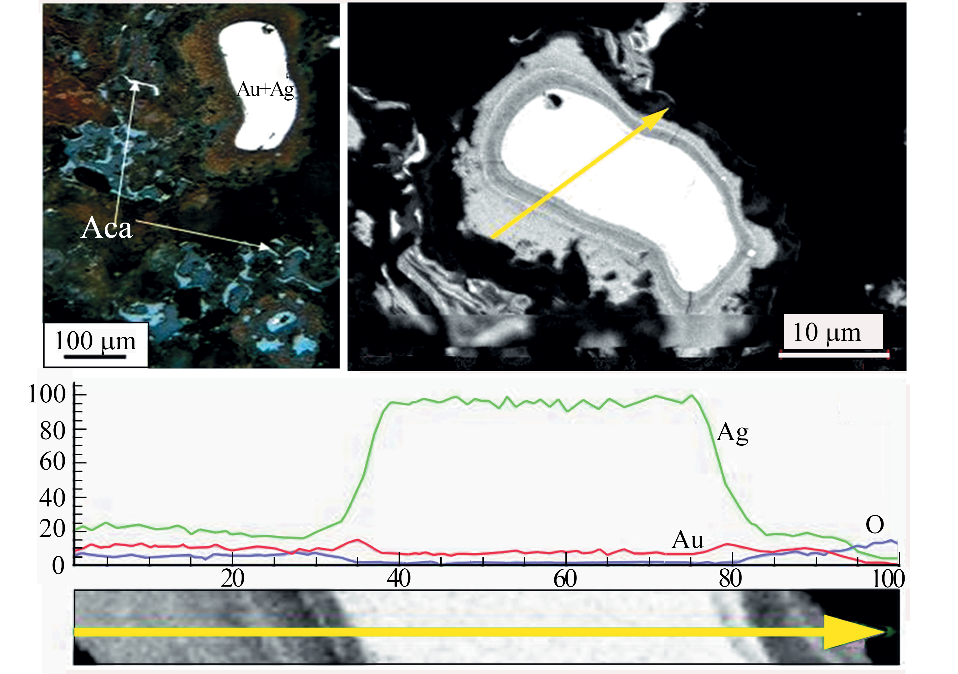 Минералогия руд изучалась в аншлифах на микроскопе AXIOPLAN Imaging. Химический состав определялся на электронно-зондовых микроанализаторах Camebax (аналитики Е.М. Горячева, Т.В. Субботникова) и QemScan (EVO50) с системой рентгеновского энергодисперсионного микроанализа Quantax Esprit СВКНИИ ДВО РАН, г. Магадан, (аналитик О.Т. Соцкая). Диагностика рудных минералов в комендитах выполнена на сканирующем электронном микроскопе JSM-5610LV (Япония) в центре коллективного пользования ИГЕМ РАН (аналитик Л.А. Иванова). Электронный микроскоп оснащен энергодисперсионным аналитическим спектрометром INCA-Energy 450 (Великобритания).