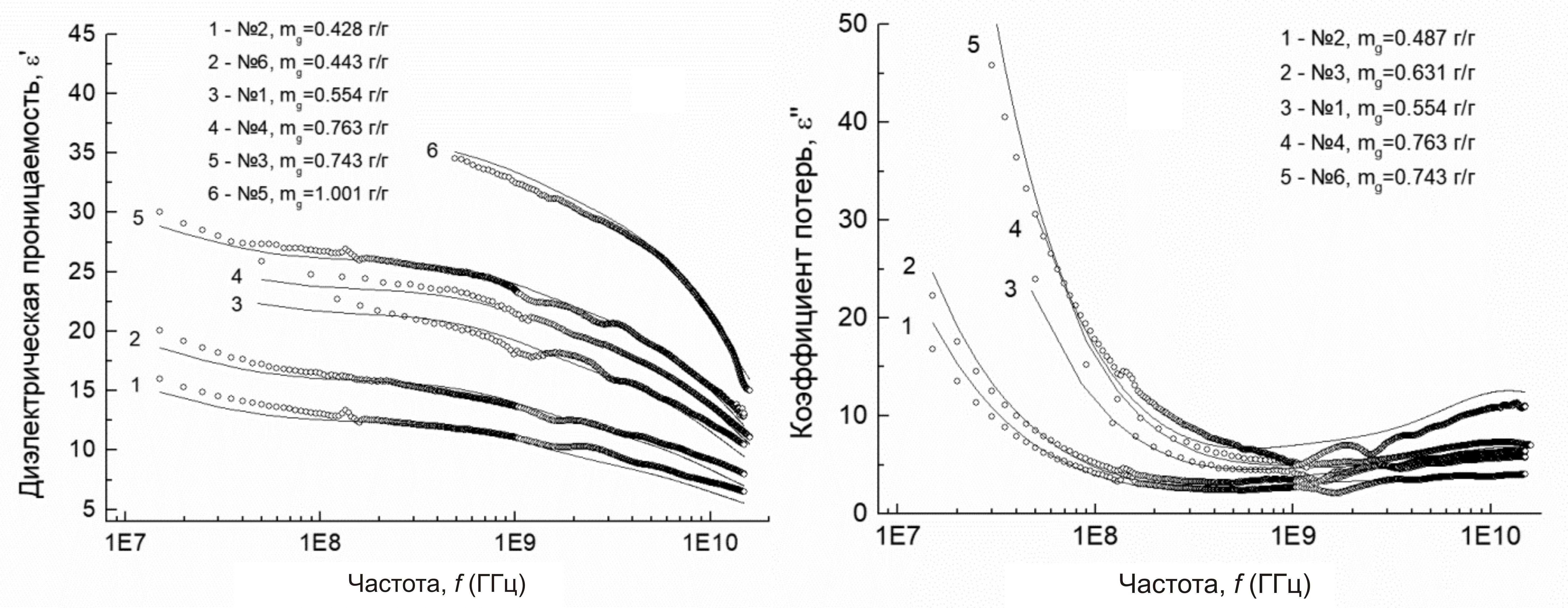 Образцы почвы приготавливались с использованием процедуры, приведенной в (Mironov, Savin, 2015). Массовая влажность образцов почвы, mg, определялась как отношение массы почвенной воды, mw, к массе высушенного образца почвы, md; то есть mg = mw /md. Количество приготовленных образцов с различными влажностями для вышеописанных почв составляло от 10 до 23, температура каждого из образцов варьировалась от 25 до –30°C. При таком количестве образцов с различными влажностями для разных почв оказалось возможным обеспечить одну и ту же, по порядку величины, погрешность определения параметров диэлектрической модели.