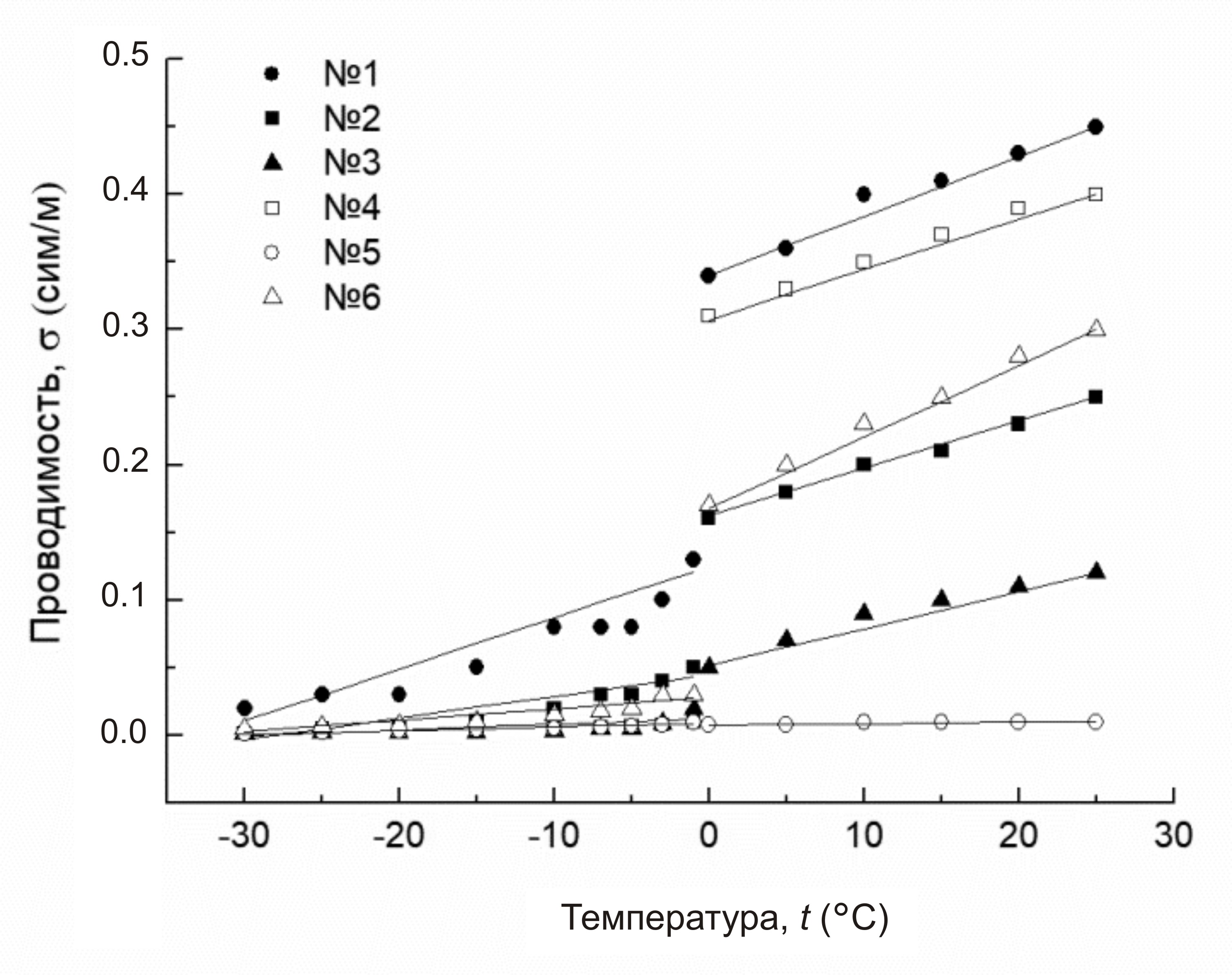 Будем считать, как это предложено в (Mironov et al., 2010a), что проводимость σp имеет линейную зависимость от температуры, характерную для ионных растворов