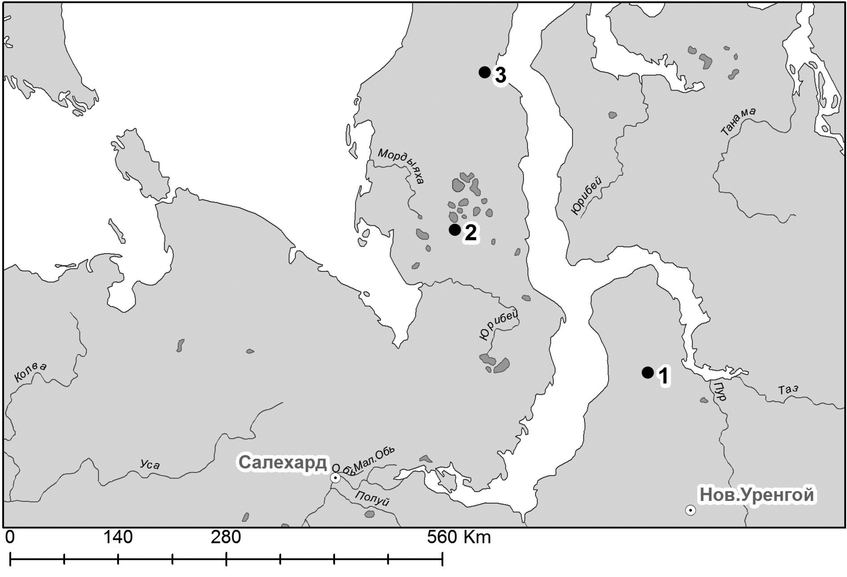 Первый участок относится к территории Тазовского полуострова и сложен преимущественно морскими отложениями. Участки 2 и 3 расположены на полуострове Ямал — на Гыданском полуострове. Участок 2 находится в центральной части полуострова. Он вытянут с юго-запада на северо-восток и занимает междуречье рек Ясавэйяха и Нядэйседаяха. В геологическом отношении поверхность сложена морскими отложениями (преимущественно песками). Участок 3 расположен в северной половине полуострова на его восточном побережье. Участок занимает левобережье р. Сабетаяха. В геологическом отношении поверхность сложена аллювиально-морскими отложениями второй террасы также преимущественно песками.