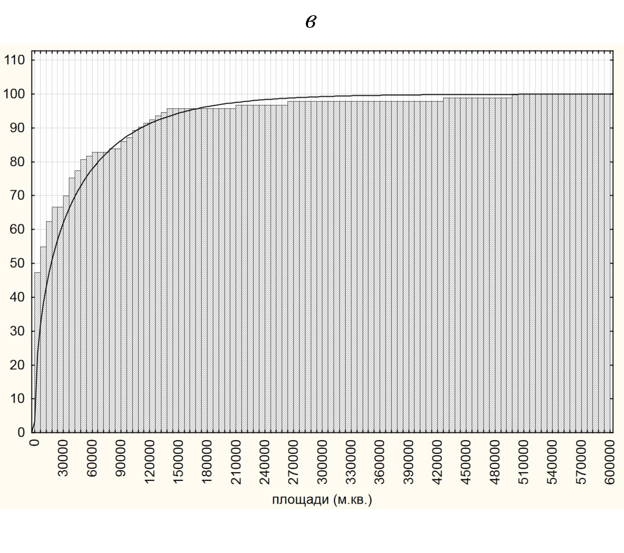 Таблица 1. Таблица соответствия теоретических и эмпирических законов распределения площадей хасыреев