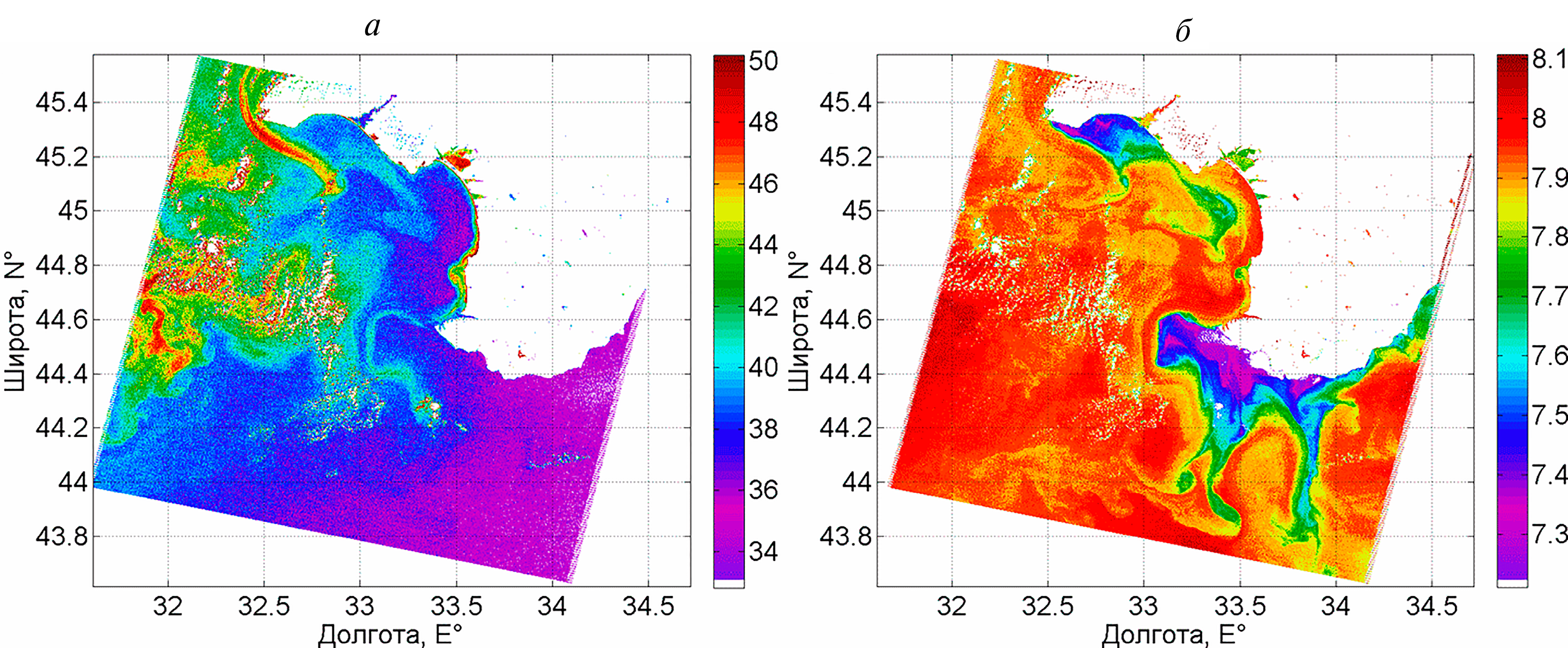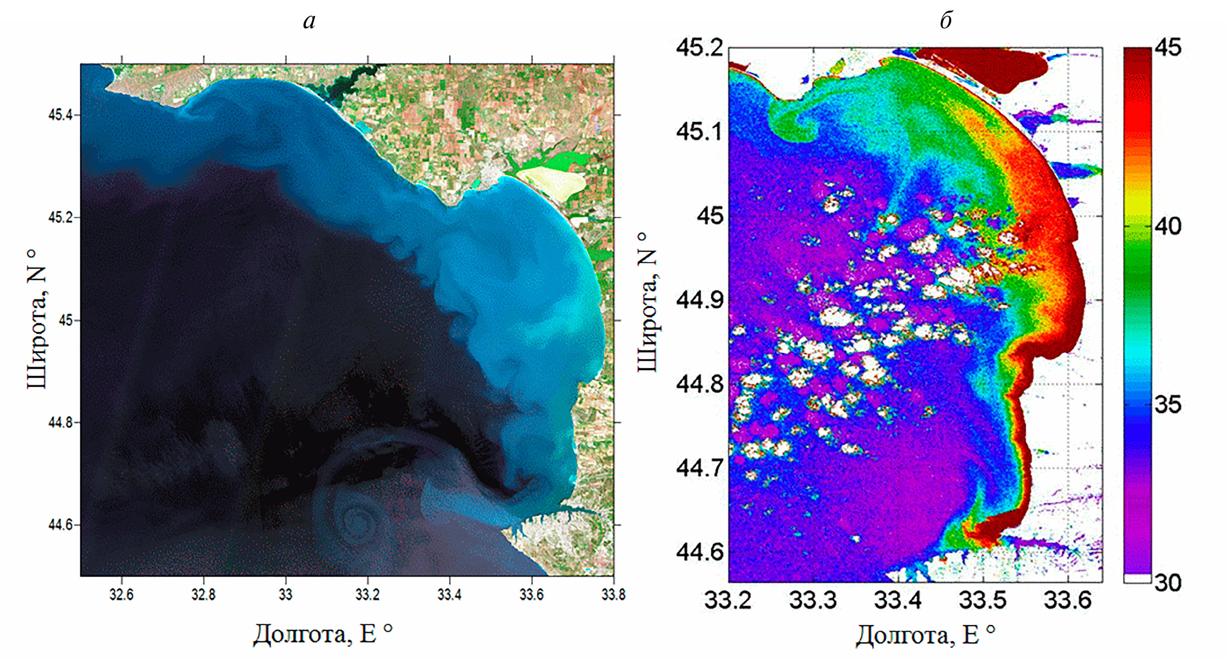 Образующееся в результате разрушения клифов и взмучивания донных наносов ВВ является хорошим индикатором динамики вод, позволяющим отслеживать их спутниковыми оптическими измерениями (Кременчуцкий и др., 2015). Спутниковые данные ранее позволили получить большое количество информации о вихревой динамике в Черном море, ее роли в горизонтальном обмене веществом, влиянии на термические характеристики бассейна (Sur et al, 1996; Ginzburg et al., 2000, 2002; Oguz et al., 2002; Zatsepin et al., 2003; Shapiro et al., 2010; Karimova, 2012; Kubryakov et al., 2016, 2018; etc). Однако вышеперечисленные исследования в основном были посвящены изучению крупномасштабных и синоптических процессов во всем Черном море.