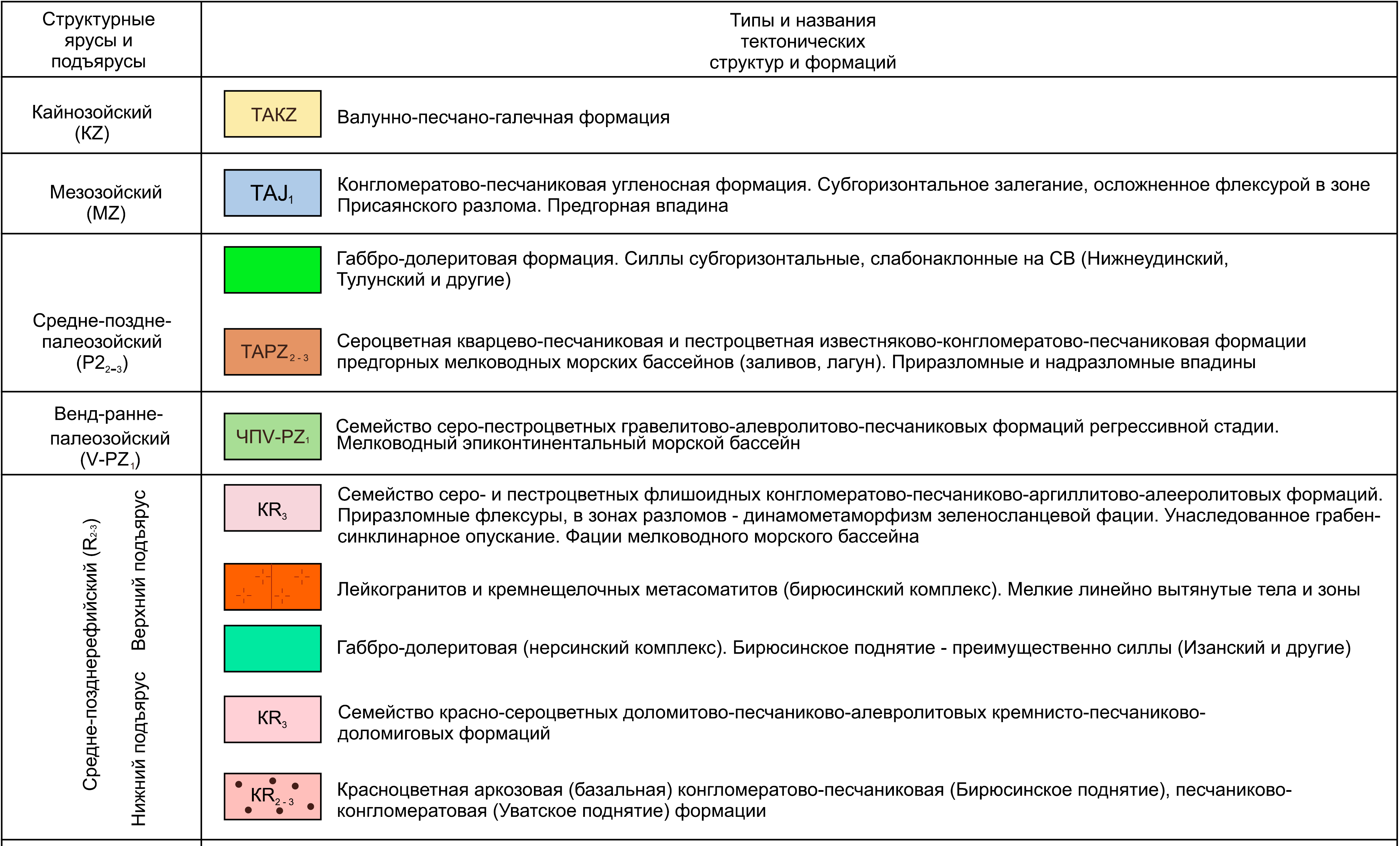 Рис. 1. Площадь Бирюсинская N-47-IX-41, 42. Фрагмент тектонической схемы (геол. карта N-47-IX, 2007).