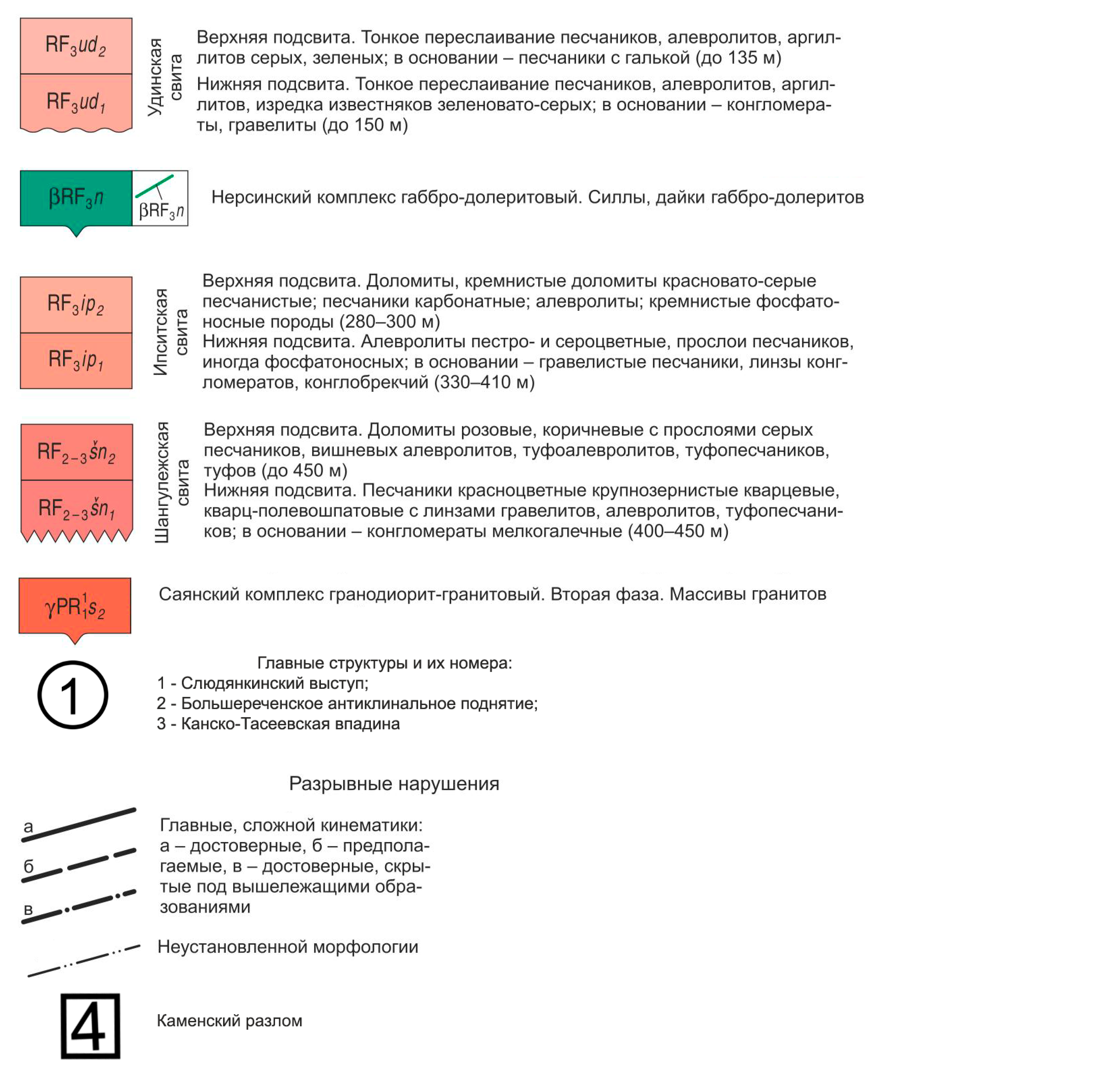 - Gosudarstvennaya geologicheskaya karta Rossiiskoi Federatsii. Masshtab 1:1000000 (tret'e pokolenie). Seriya Angaro-Eniseiskaya. List N 47 — Nizhneudinsk. Ob”yasnitel'naya zapiska [State geological map of the Russian Federation. Scale 1: 1000000 (third generation). Series Angaro-Yenisei. Sheet N 47 — Nizhneudinsk. Explanatory note]. SPb.: Kartograficheskaya fabrika VSEGEI, 2012. (In Russian).