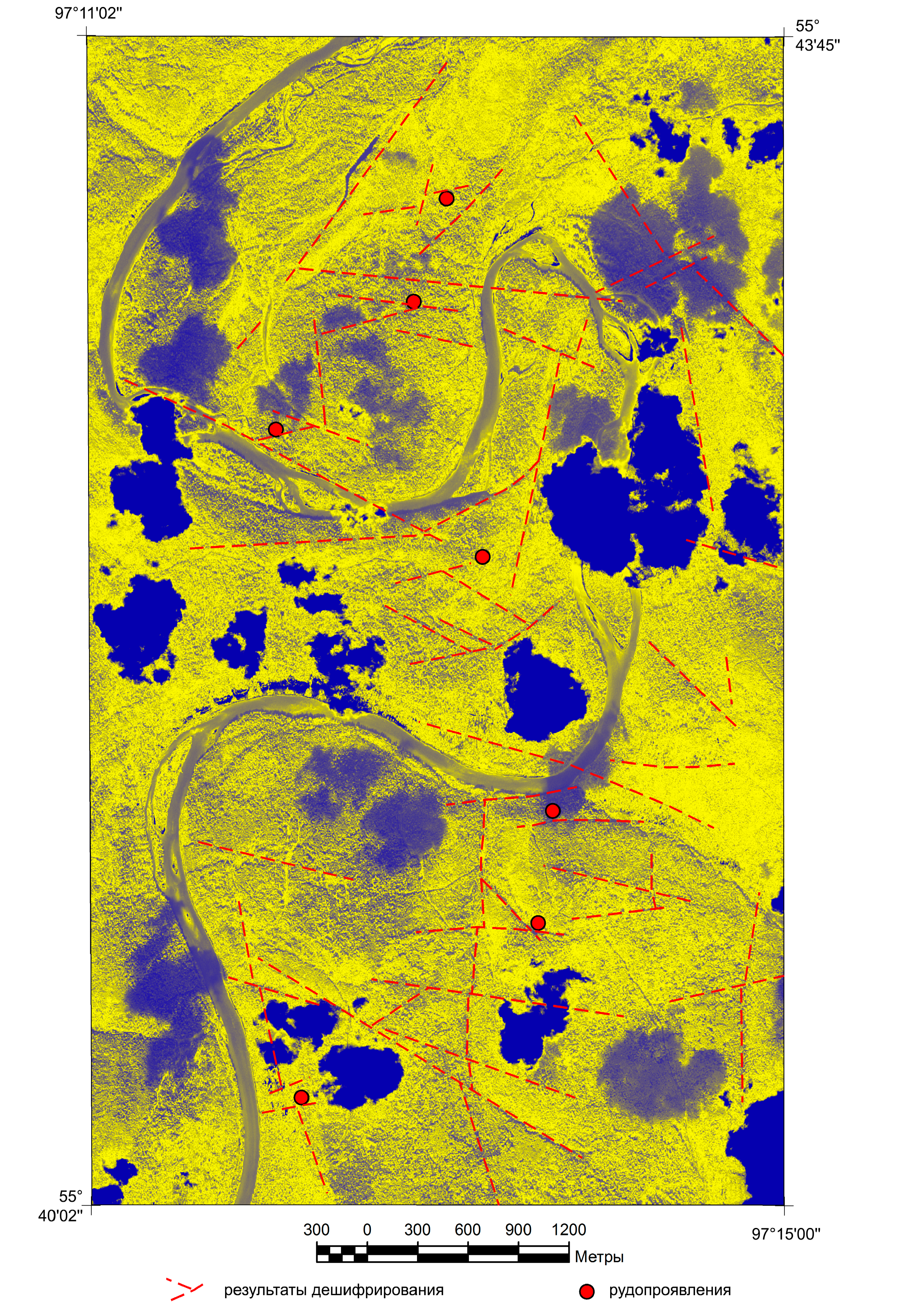 Рис. 4. Площадь Бирюсинская (N-47-IХ-41, 42). Результаты дешифрирования материалов космической съемки Ресурс-П (ШМСА).