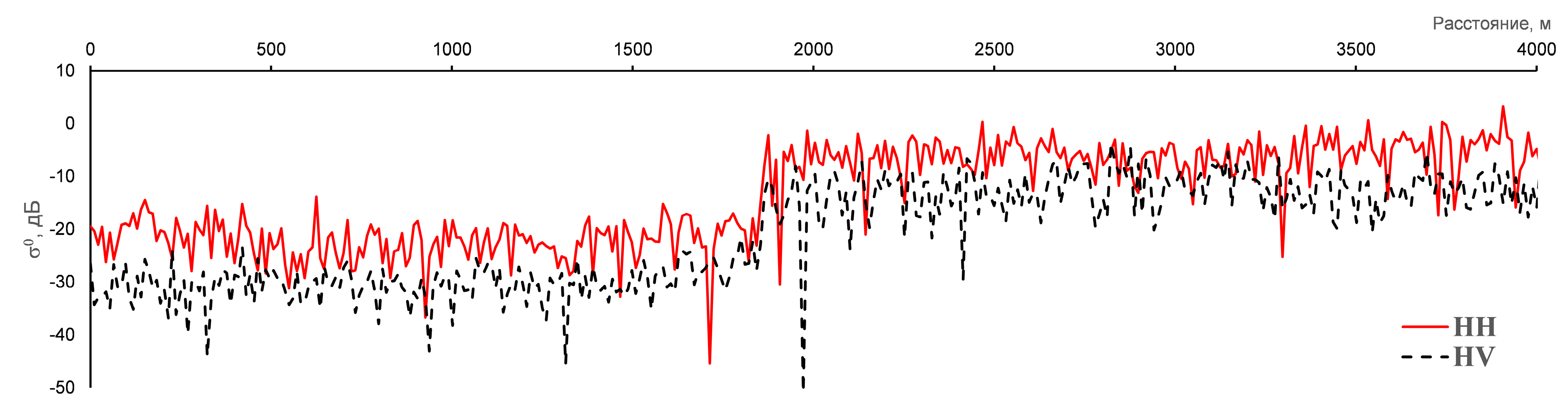 Рис. 1. Профили радиолокационного эхо-сигнала на HH и HV поляризациях для РСА ALOS PALSAR‑1.