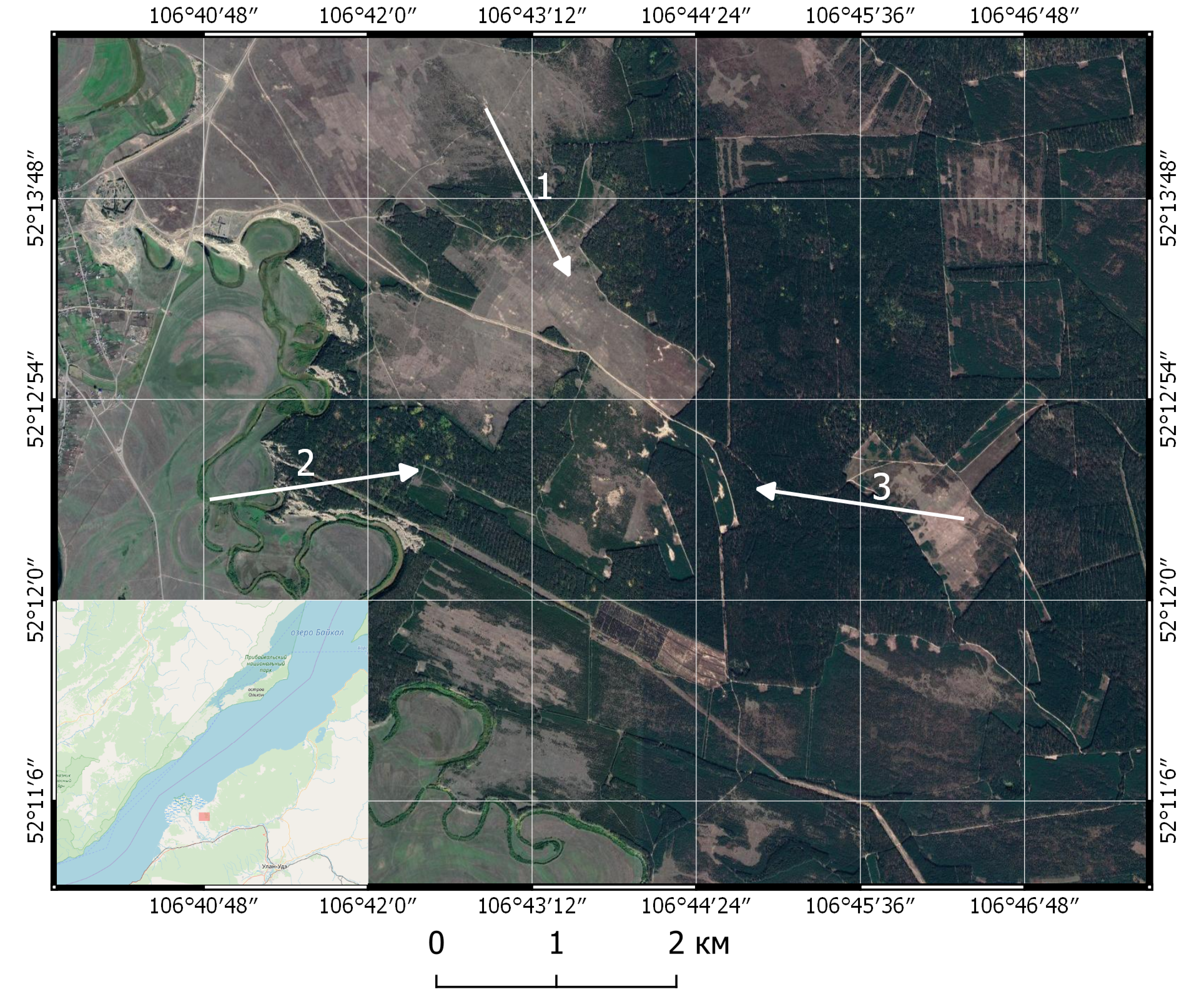 В качестве тестового полигона для апробации разработанной методики было выбрано несколько лесных кварталов преимущественно соснового леса на равнинной части дельты реки Селенга.
