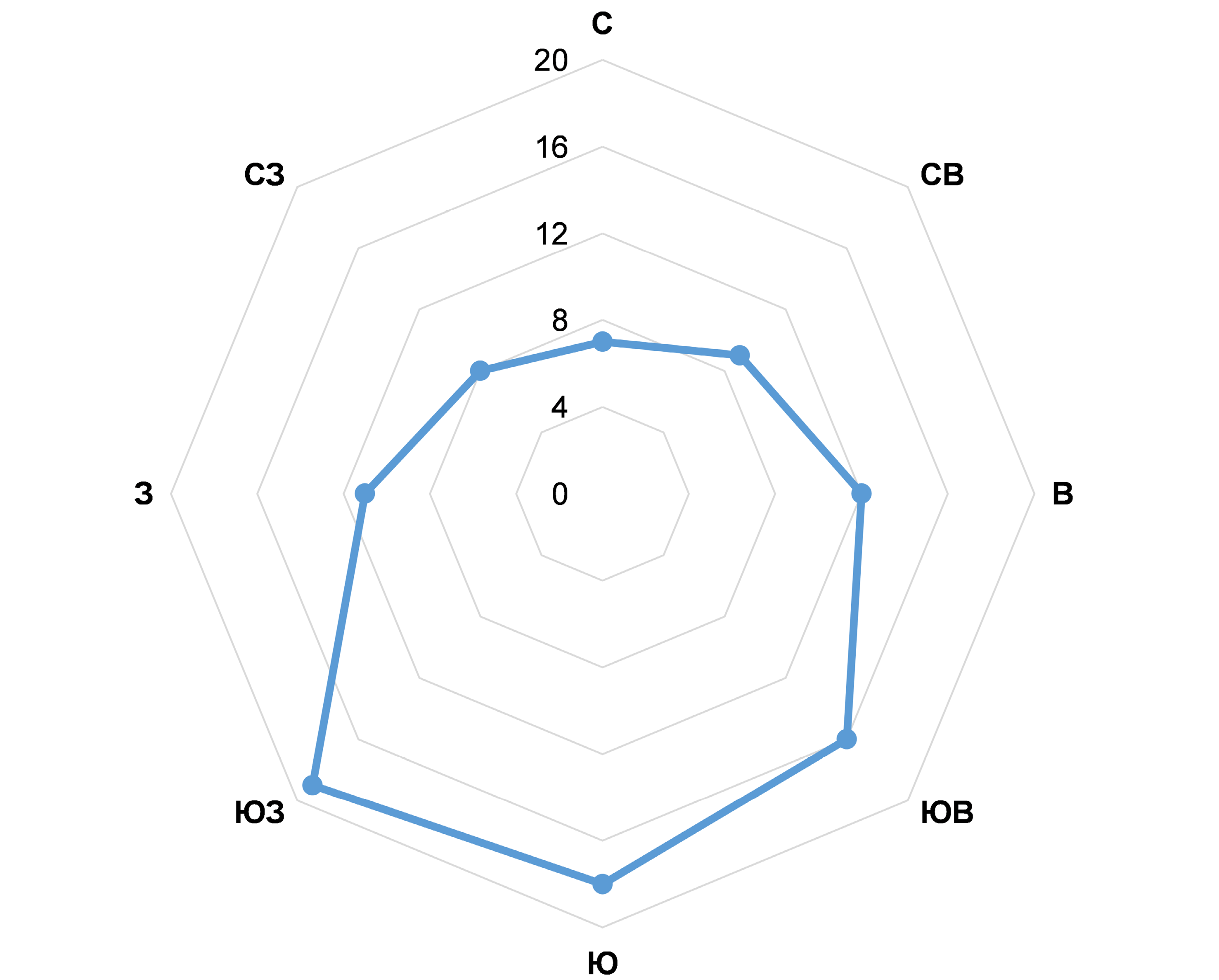 Рис. 5. Результаты наземных измерений азимутального распределения ветвей деревьев.