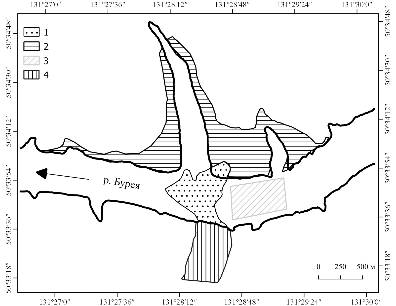 участок 3 поверхность р. Бурея (вода 28 ноября 2018 г., ледовый покров 12 декабря 2018 г.);