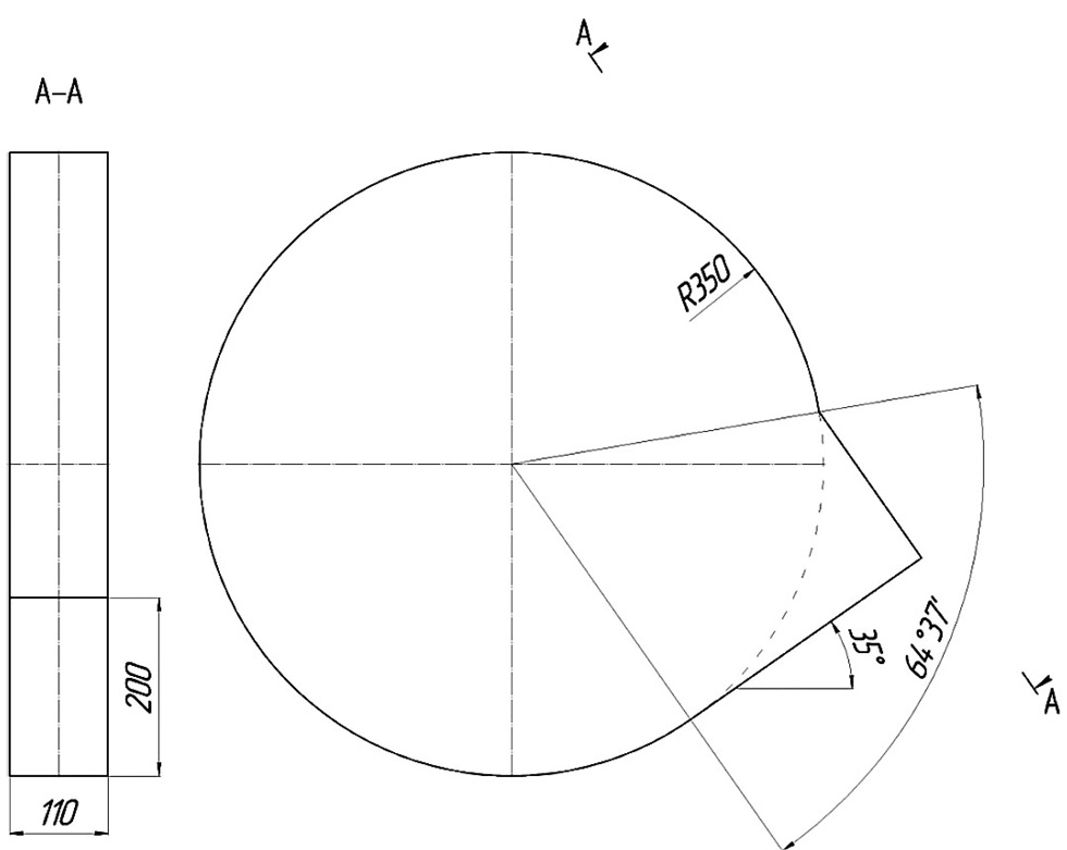 Из конструктивных соображений, связанных с габаритными размерами машины по ширине, диаметр каждого из двух роторов двухбарабанного разбрасывателя удобрений не может быть больше 700 мм. Размеры выгрузного окна прямоугольного сечения, выполненного в боковой стенке кожуха ротора, приняты пропорционально соответствующим размерам ранее установленных для однобарабанного разбрасывателя с диаметром ротора 1080 мм. Таким образом, ширина выгрузного отверстия составила 110 мм, высота – 200 мм. Выгрузное отверстие расположено под углом к горизонту (рис. 1).