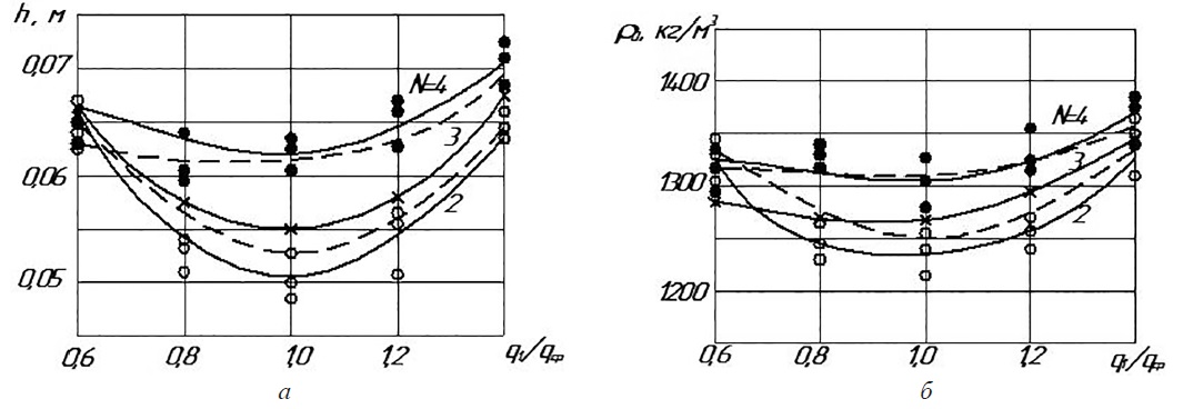 Исследования показали, что с увеличением количества осей влияние отношения q1/qср на глубину следа и уплотнение почвы снижается. Это объясняется уменьшением перепада давлений колес при увеличении количества осей ходовой системы.