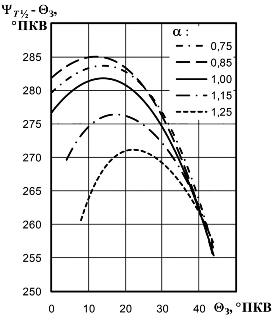 К сожалению, УОЗ, при котором достигается максимум разности (ΨT ½ – Θз), значительно отличается от оптимального – меньше на 13…15° ПКВ (для вышеуказанных условий). По этой причине переход в область пониженного влияния смещения шкалы может происходить только для более точной оценки состава смеси, а также для определения самого смещения.