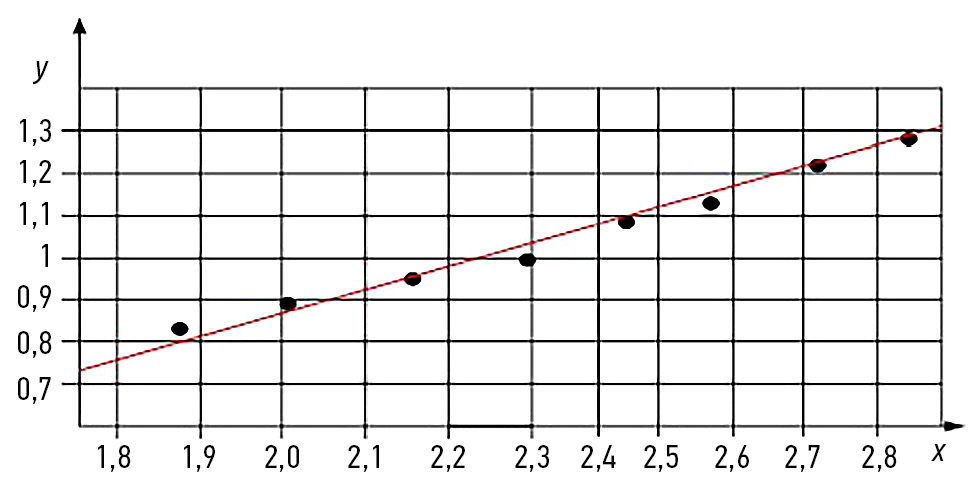 Далее, методом линейной аппроксимации экспериментальных данных были получены коэффициенты уравнения регрессии [4], имеющего вид: