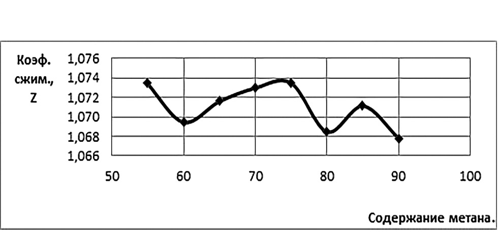 Рис. 3. Теоретическая зависимость коэффициента сжимаемости биогазового топлива.