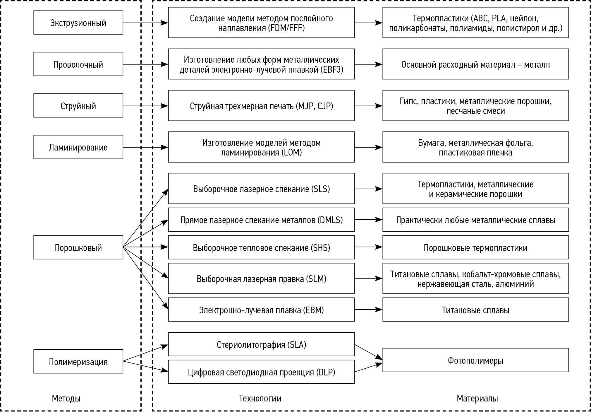 Рис. 3. Основные методы 3D печати.
