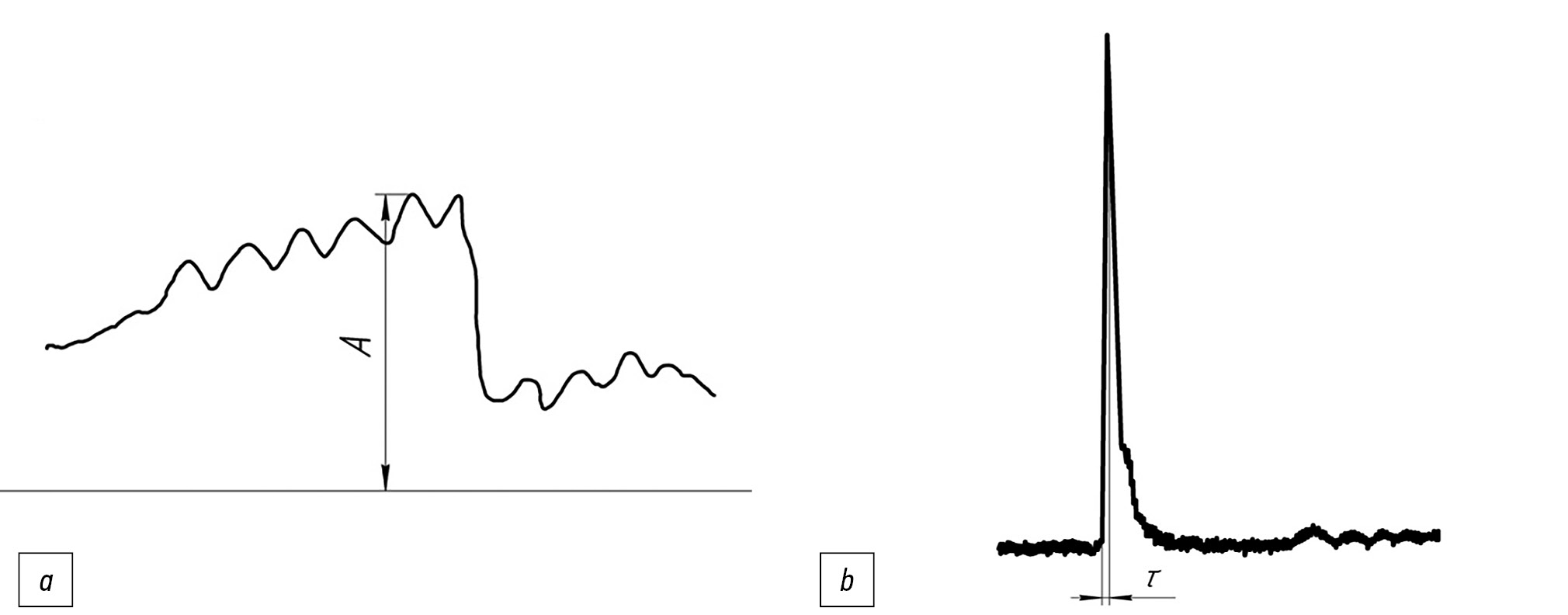 Рис. 2. Образец осциллограммы усилия разрушения зерна кукурузы: a – при статической нагрузке, b – при ударной нагрузке.