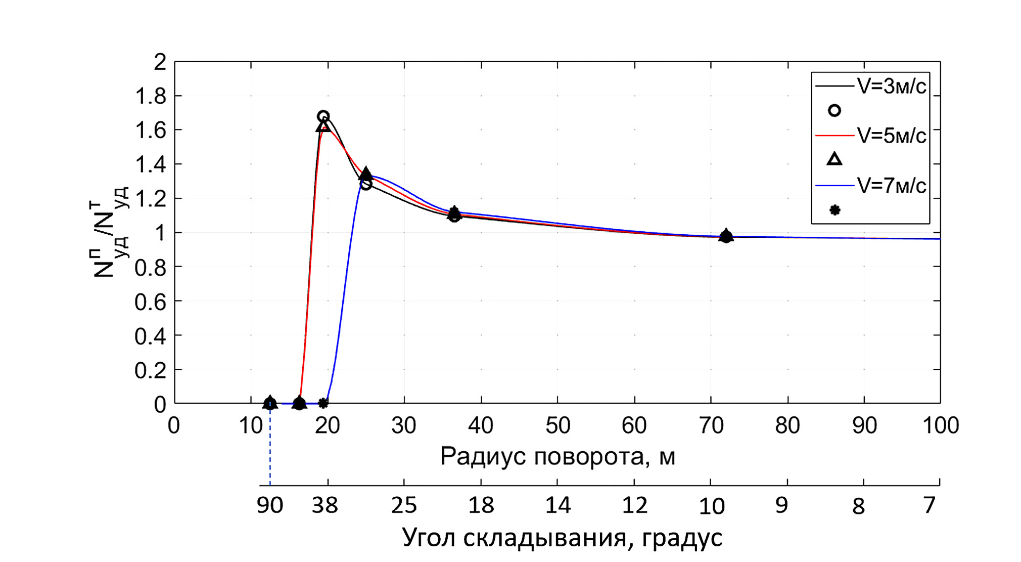В качестве критерия энергоэффективности ГП при повороте с заданным углом складывания (кривизной) был выбран коэффициент мощности сопротивлений, который будем определять следующим образом [14]: