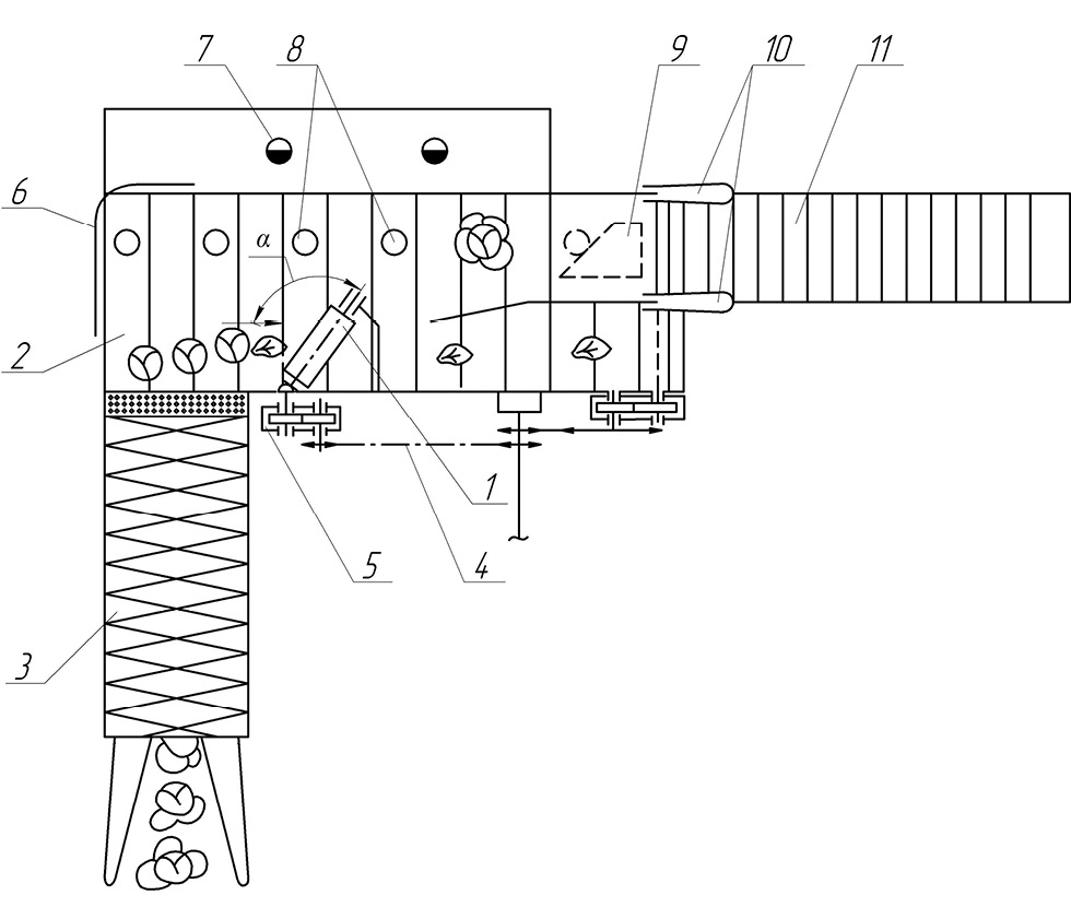 Fig. 1. Scheme of placement of the new separating device in the experimental cabbage harvester.