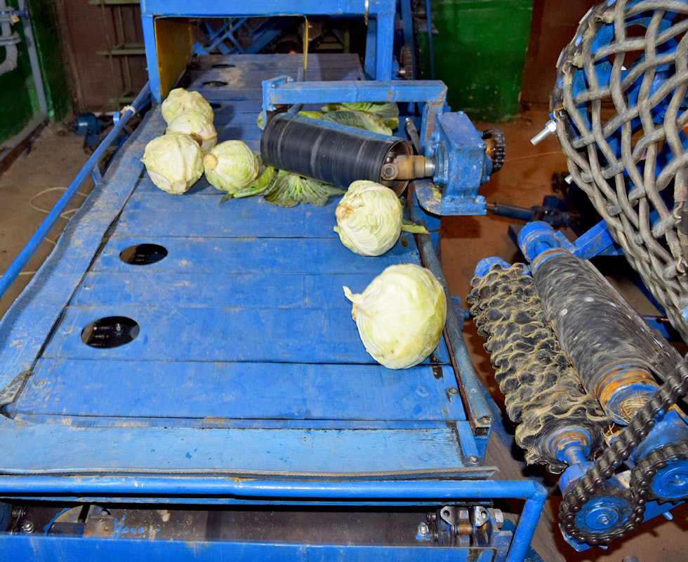 При машинной уборке кочанной капусты в потоке убираемой массы, 15…20% составляют отходы (листья капусты, потерявшие связь с кочанами, остатки сорной растительности и другие примеси) [1]. Кроме того, часть кочанов требует доработки до товарного вида, предусмотренного соответствующим ГОСТом [2].