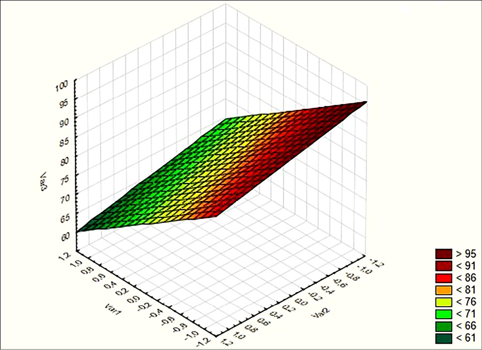 Согласно данному выражению на рис. 4 показана поверхность отклика исследованного процесса.