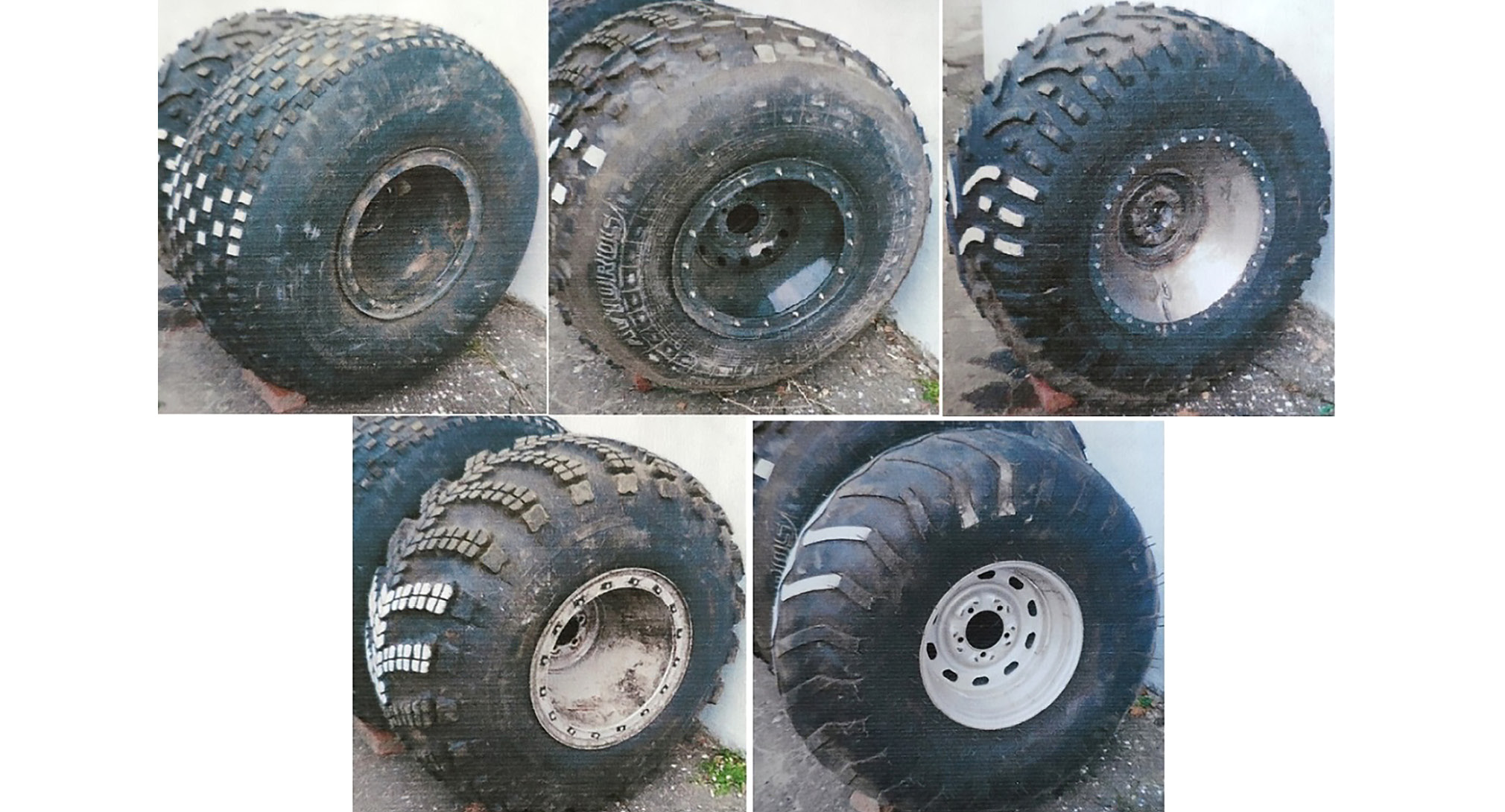 С участием авторов проведено экспериментальное определение упругих свойств шин сверхнизкого давления. Теоретическое исследование основано на результатах этих экспериментов. Были измерены 7 шин сверхнизкого давления, фотографии которых показаны на рис. 1.