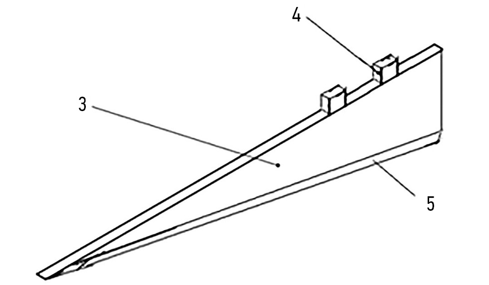 Рис. 2. Клиновидный зуб: 3 — плоские клиновидные зубья, 4 — монтажные кронштейны, 5 — режущая кромка.