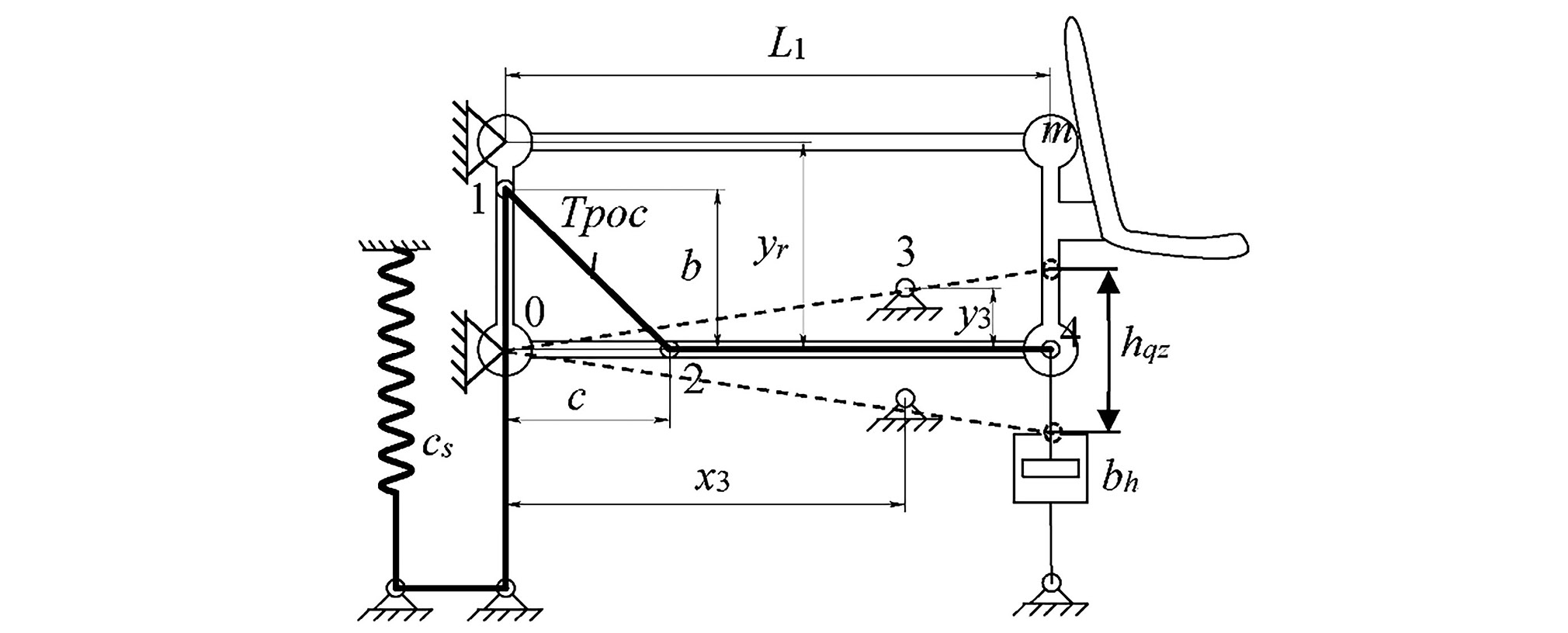 Рис. 1. Схема конструктивных параметров виброзащитного механизма сиденья. / Fig. 1. Scheme of design parameters of the seat vibration protection mechanism.