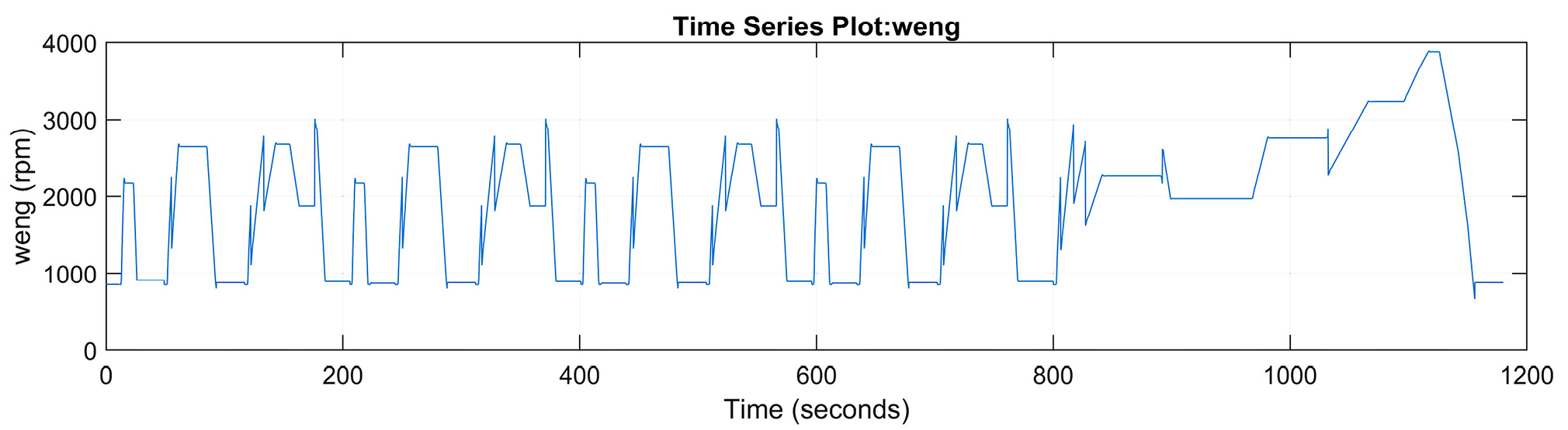 Рис. 7. Зависимость частоты вращения коленчатого вала двигателя ВАЗ 2123 в цикле NEDC при испытаниях Chevrolet Niva.