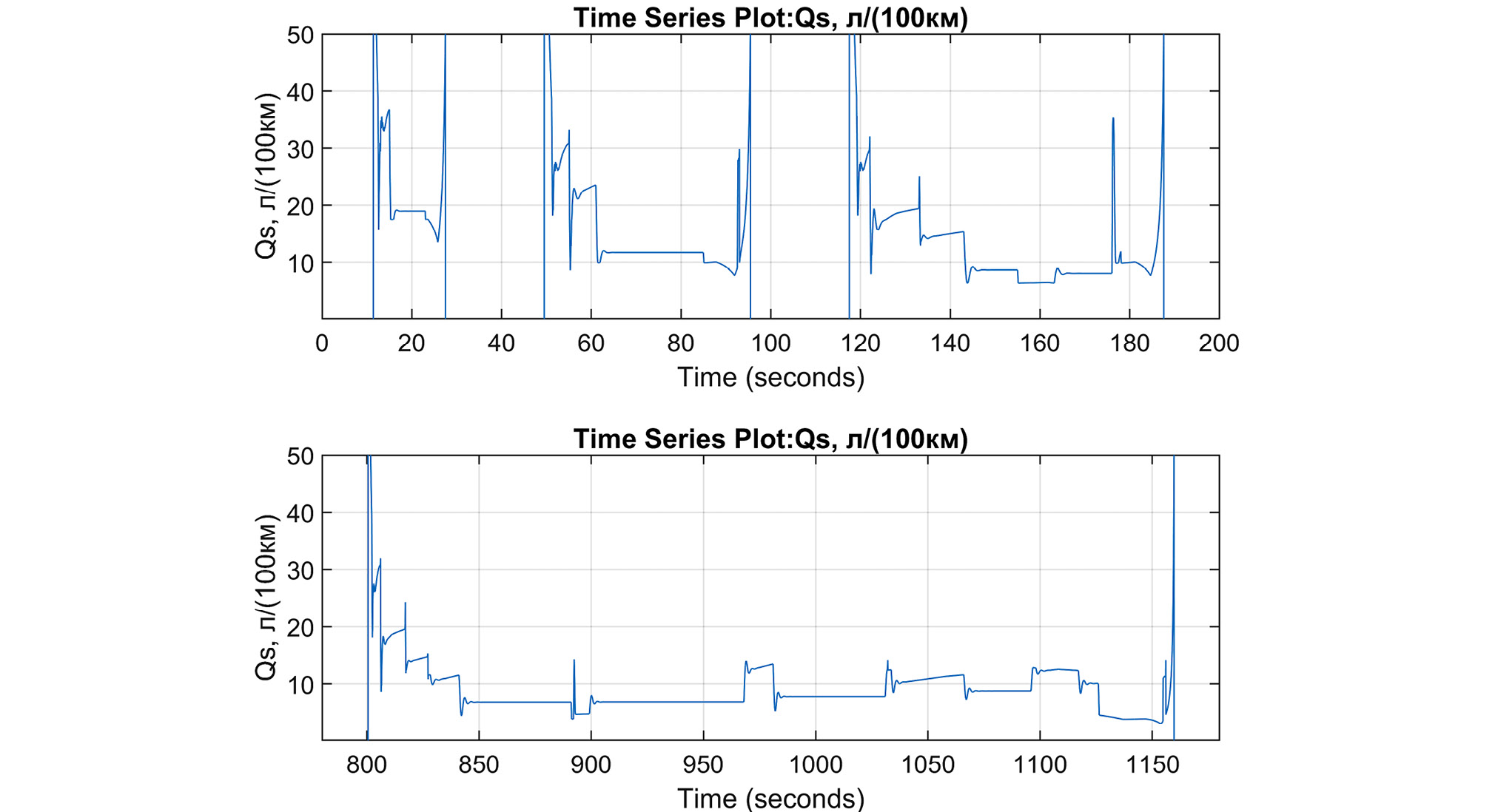 На основе полученной модели в дальнейших исследованиях возможно получение данных о расходе топлива для стандартных дорожных испытаний в соответствии с ГОСТ. При этом требуется замена модуля, генерирующего данные о режимах движения автомобиля, с учетом особенностей конкретных испытаний [15].