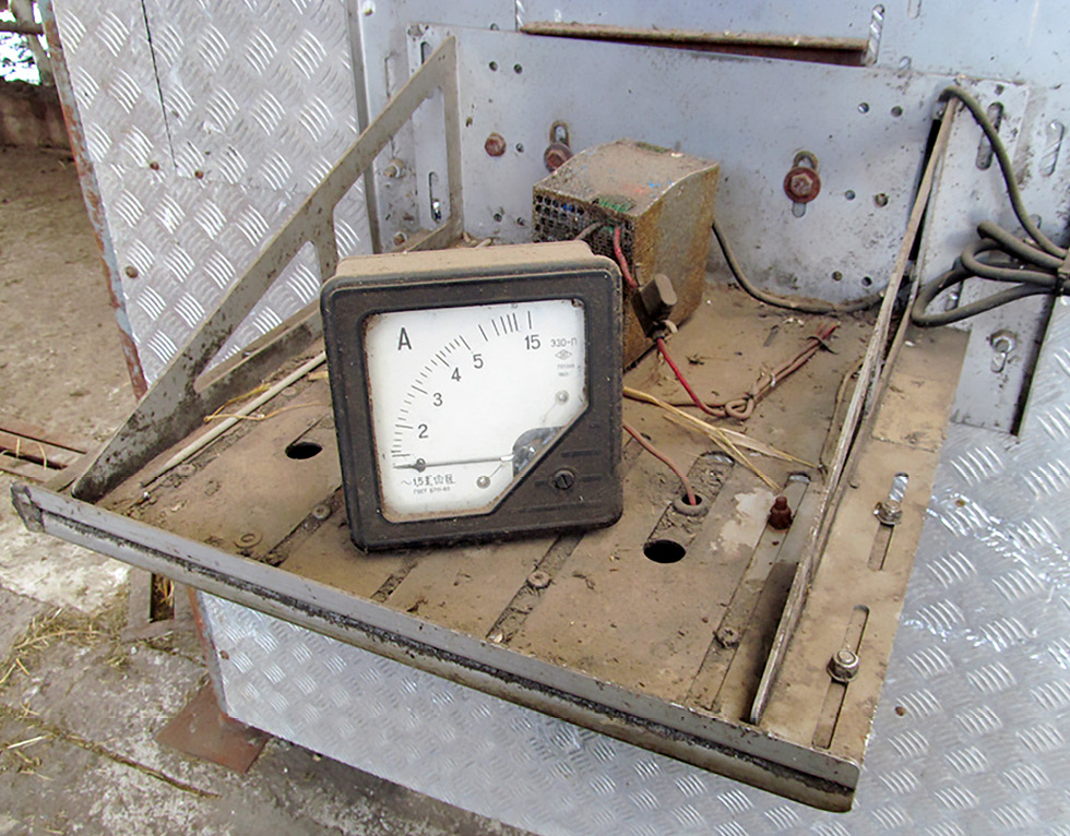 Рис. 1. Амперметр Э30-П и выпрямитель тока, установленные на зарядной станции робота-подталкивателя корма.