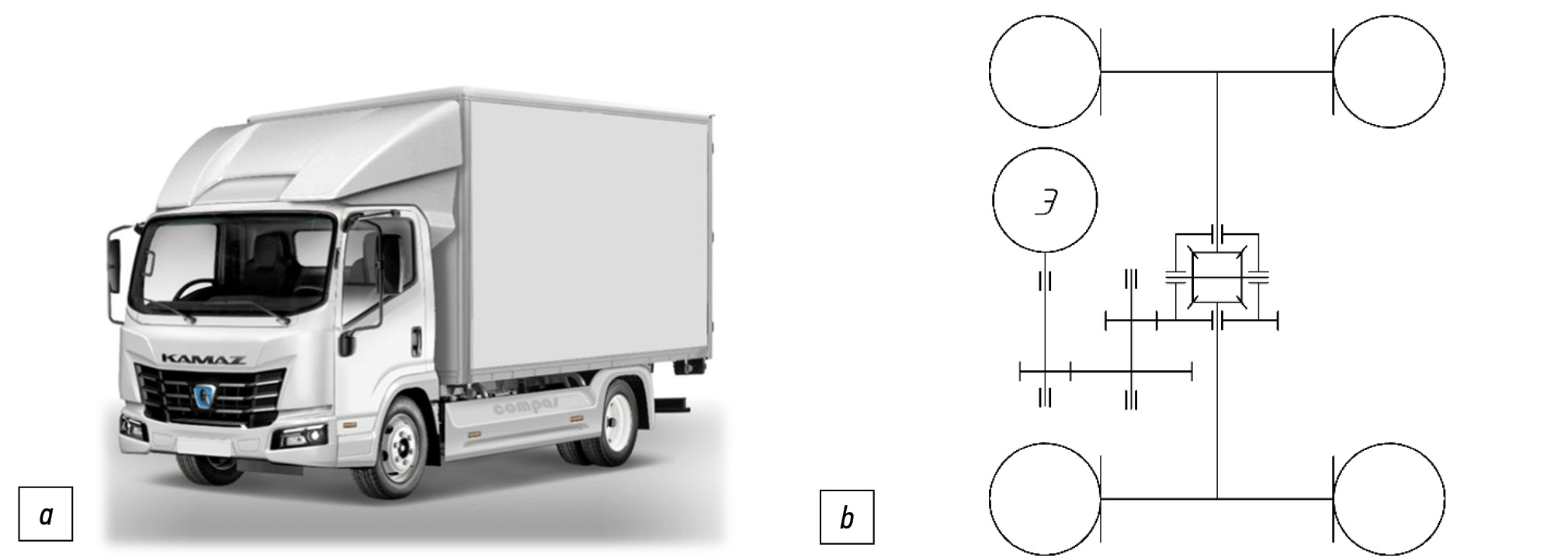 Для проверки работоспособности приведенного алгоритма оценки мгновенного электрического момента Mt(t) для СДПМ было проведено моделирование движения аккумуляторного колёсного транспортного средства рис. 2, характеристики которого приведены в табл. 1. В качестве тягового был использован СДПМ, характеристики электродвигателя приведены в табл. 2.