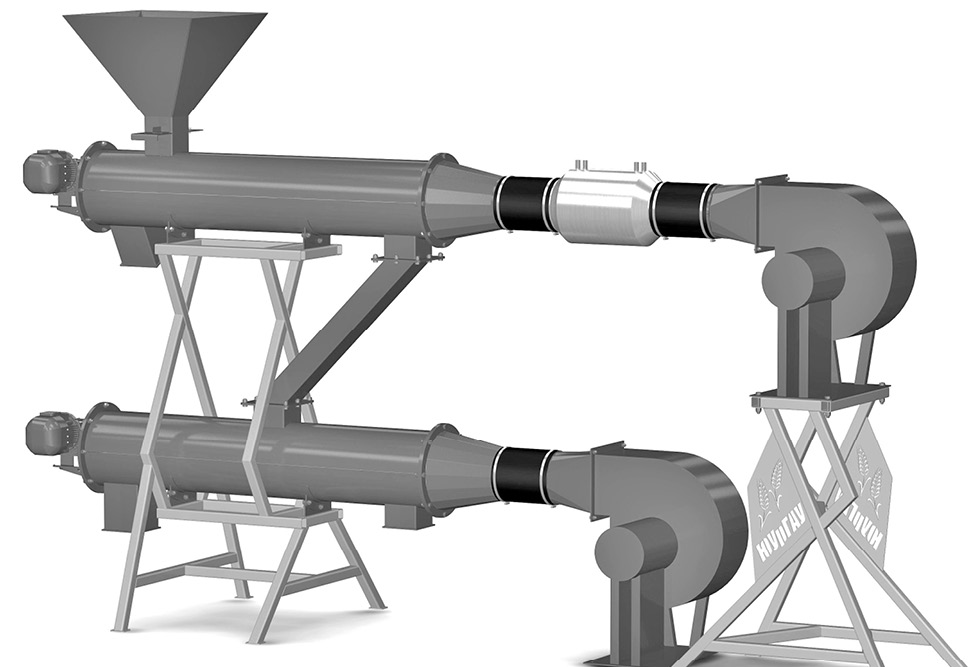 Для рационального процесса съёма влаги во время очистки зерна необходимо использовать два рабочих органа, соединённых между собой последовательно, рис. 1.