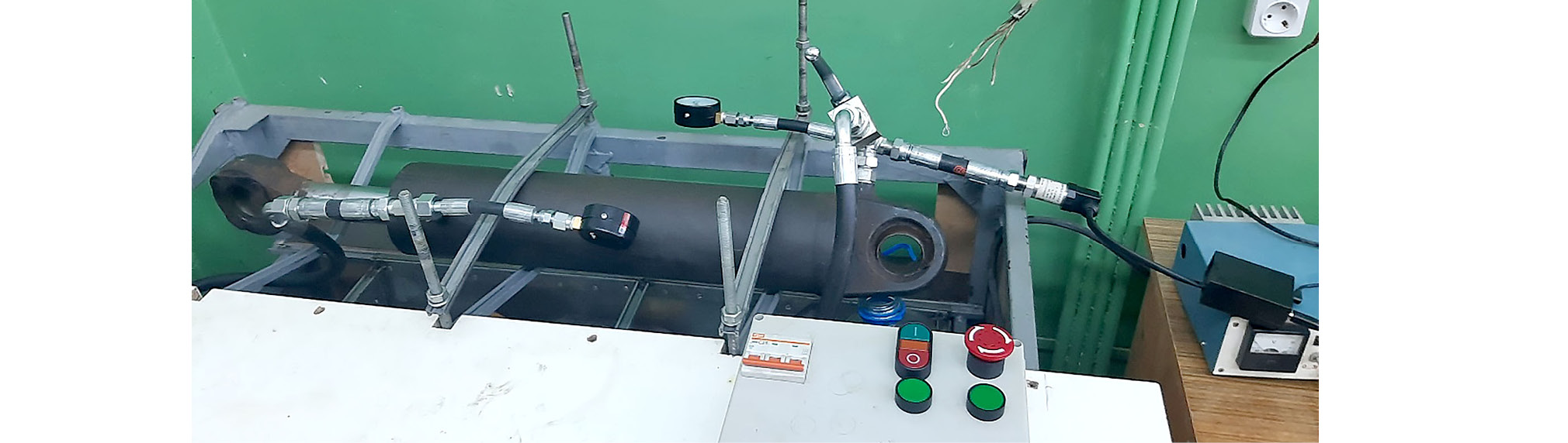 Для изучения предложенного метода оценки работоспособности гидроцилиндров был разработан стенд и программа исследования. Стенд позволяет проводить гидравлические испытания гидроцилиндров при номинальном давлении 2 МПа и при максимальном 3 МПа.