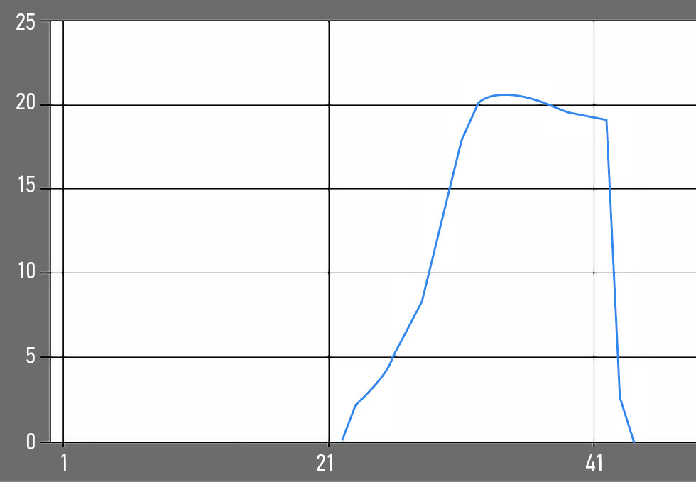 Рис. 9. Угол повышения давления у исправного цилиндра.