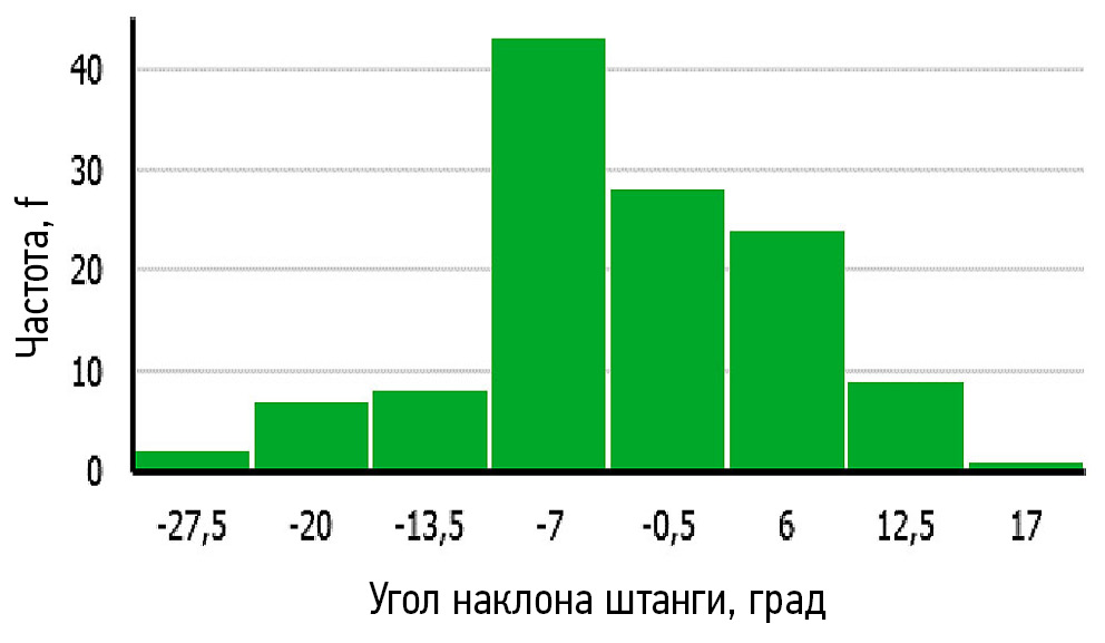 Fig. 2. A distribution histogram of oscillation values of the boom of the single-support sprayer in transverse-vertical plane.