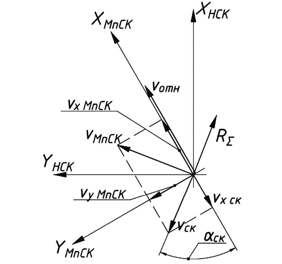 Далее проецируется вектор линейных скоростей на оси микроподвижной системы координат с учетом эквивалентного угла αт экв точки [10]: