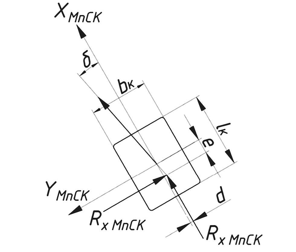 где: Rn.к — радиус траектории катящегося колеса; e — плечо поперечной реакции, e = lк/6; d — плечо продольной реакции, d = tg(δ)e.